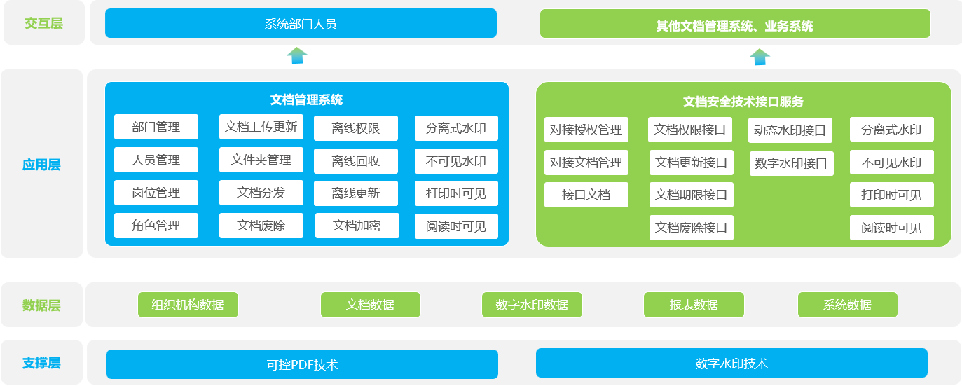 安全可控文档服务系统是基于B/S架构的系统,包含了基础文档管理系统的文档上传、储存、更新、废止等功能,也集成了文档应用管理的各种功能,同时提供了二次开发的标准http接口服务,便于其他系统对接,管理文档应用的全流程。
