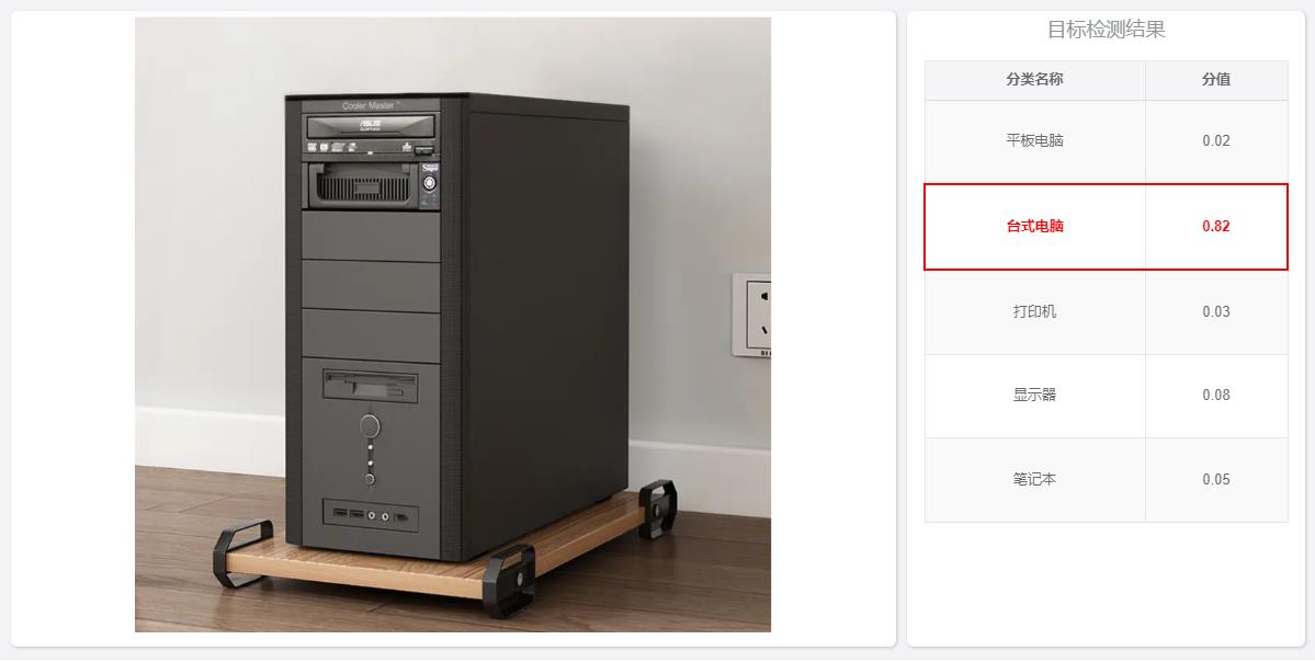 针对资产场景中5类常见影像:显示器、打印机、电脑、笔记本、平板电脑等进行智能场景识别,无需提前手动分类处理,上传图片即可完成自动资产识别。助力企业内部资产统计等业务场景效率升级。